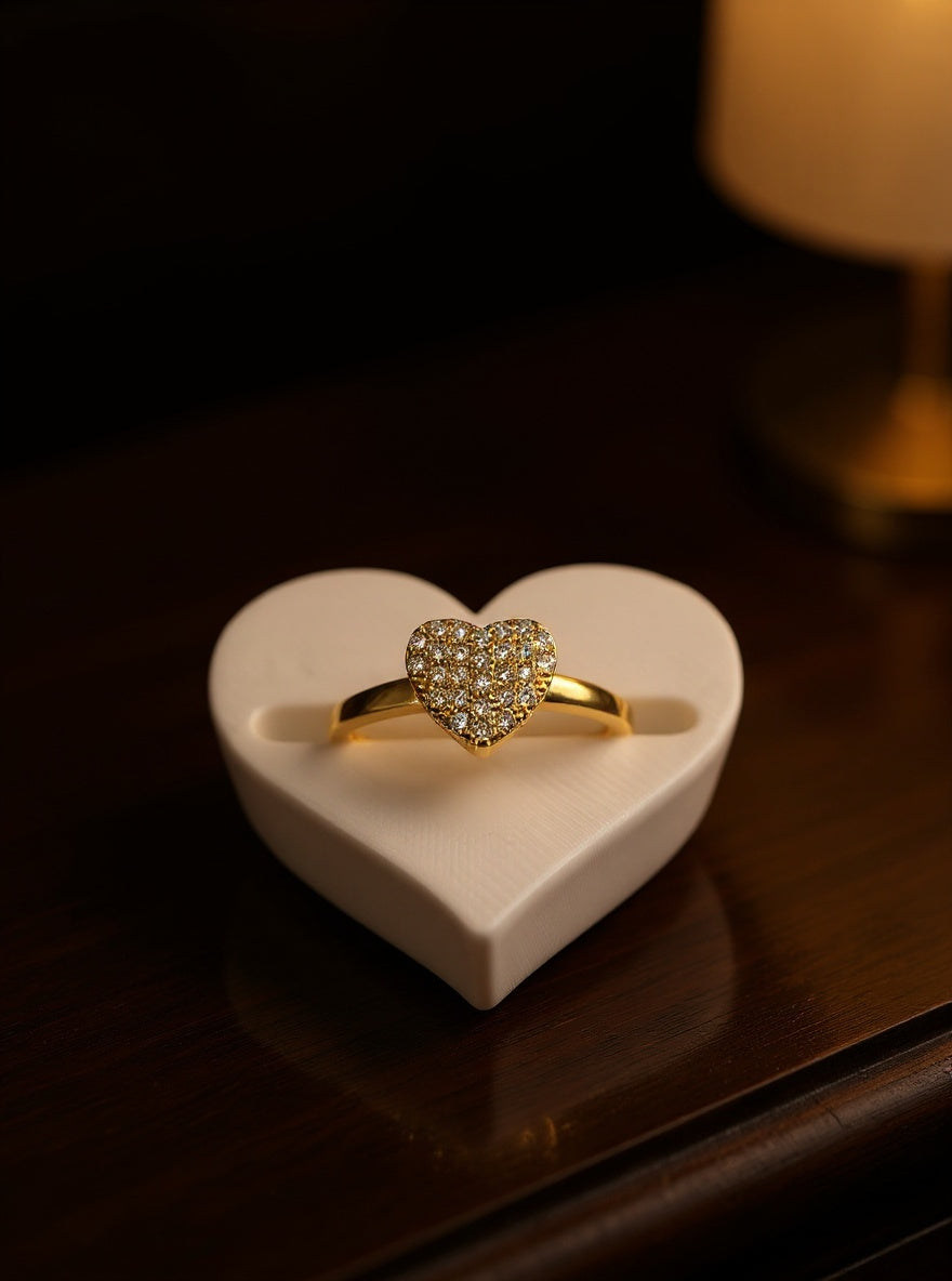Anel Solitário Coração Cravejado com Micro Zirconias