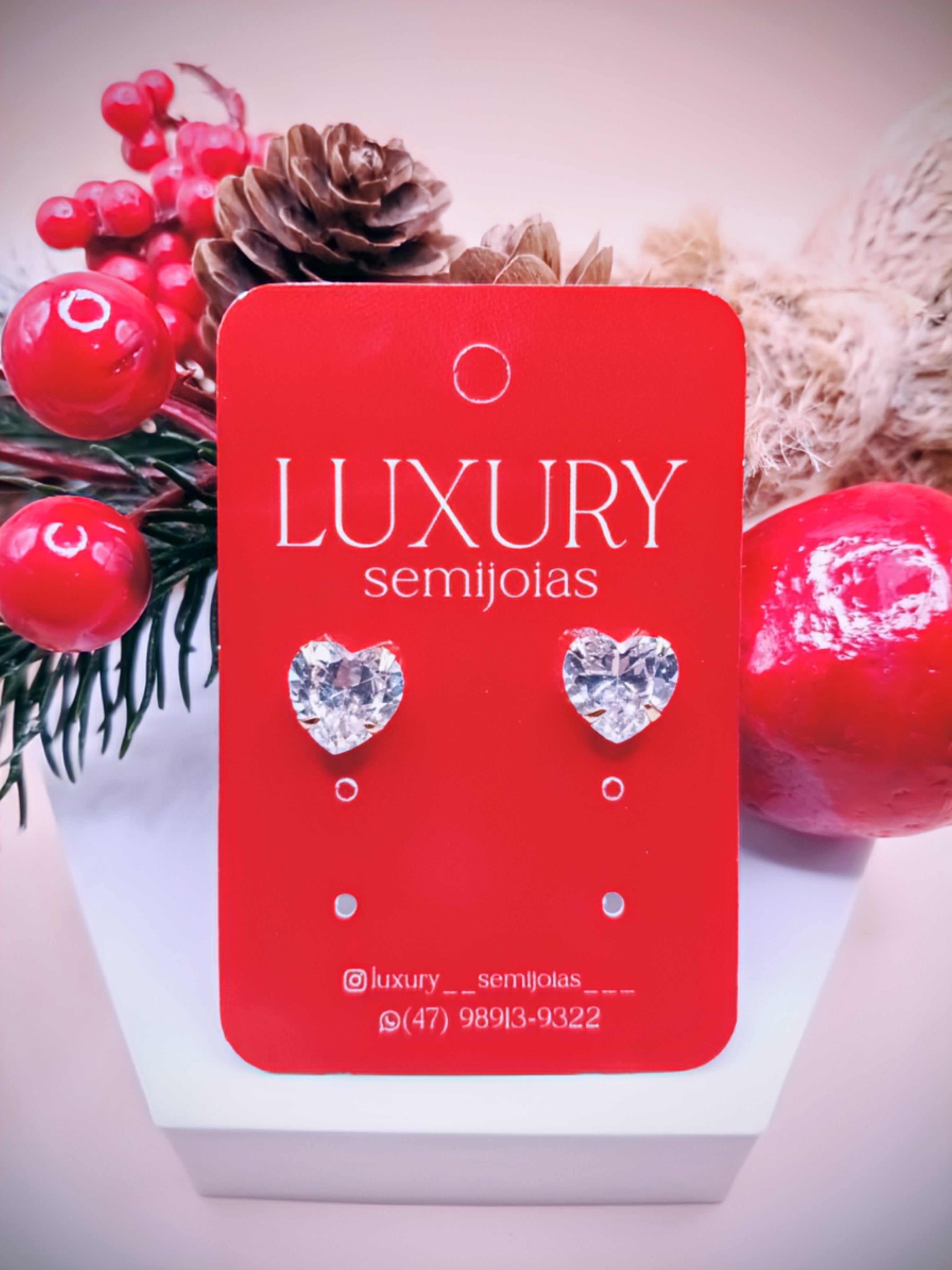 Brinco Coração Pedra de Zirconia Cravejada