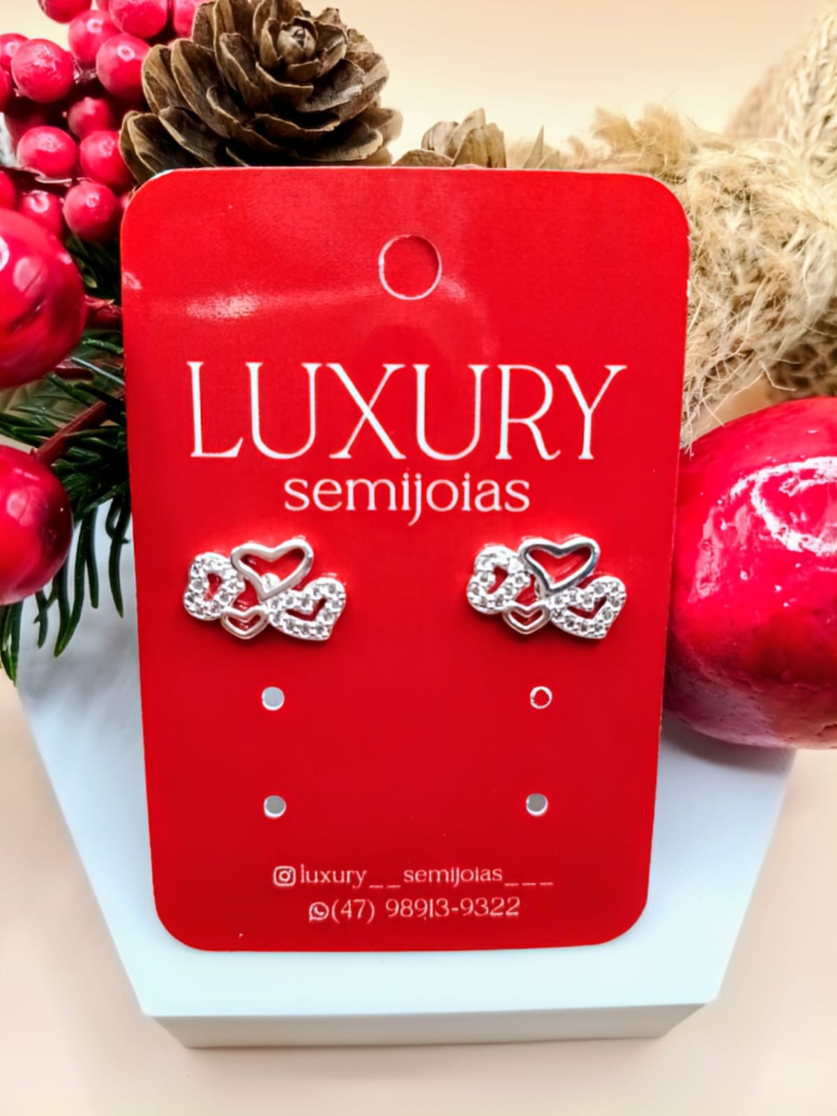 Brinco Corações Cravejado Zirconia