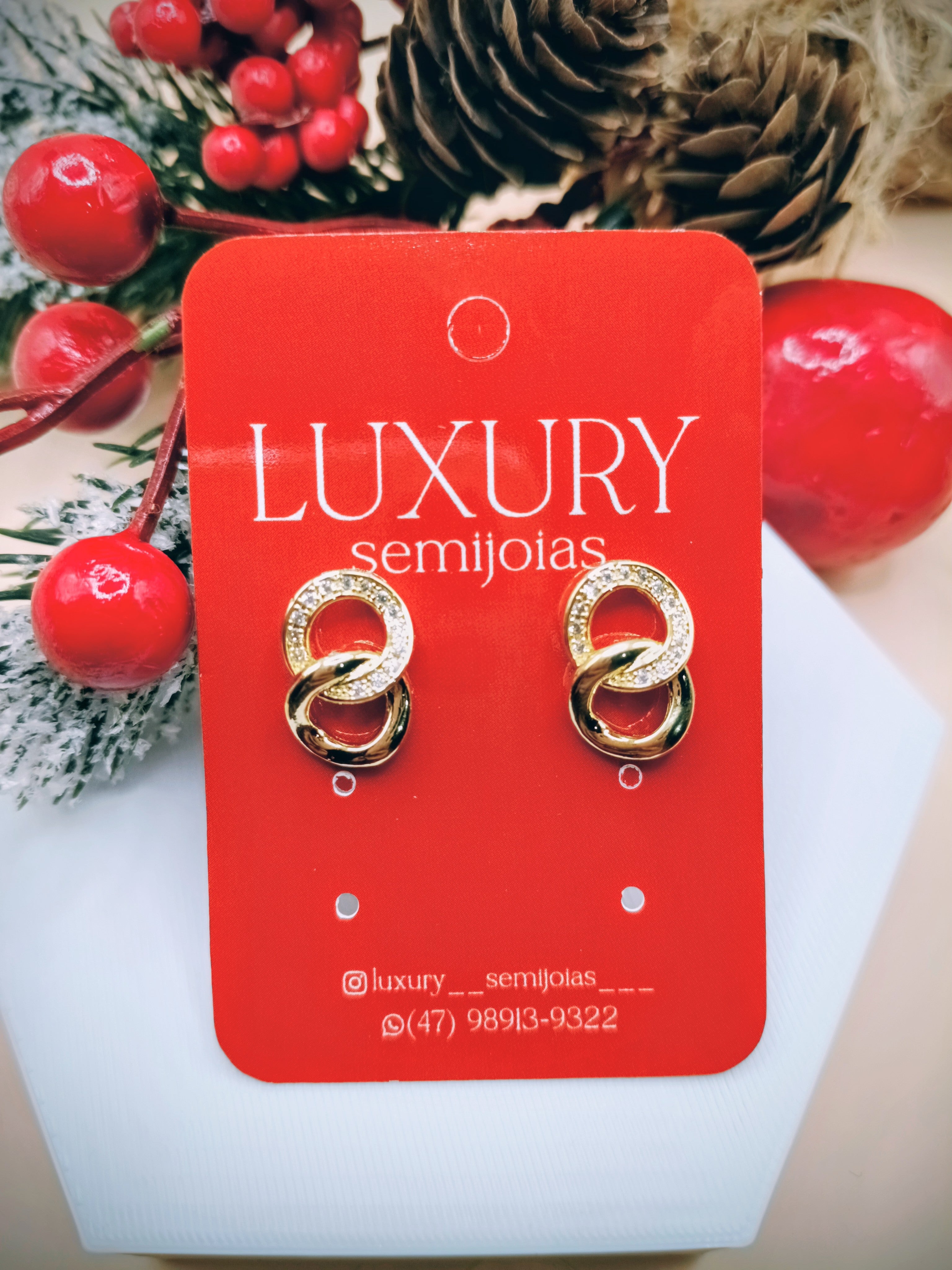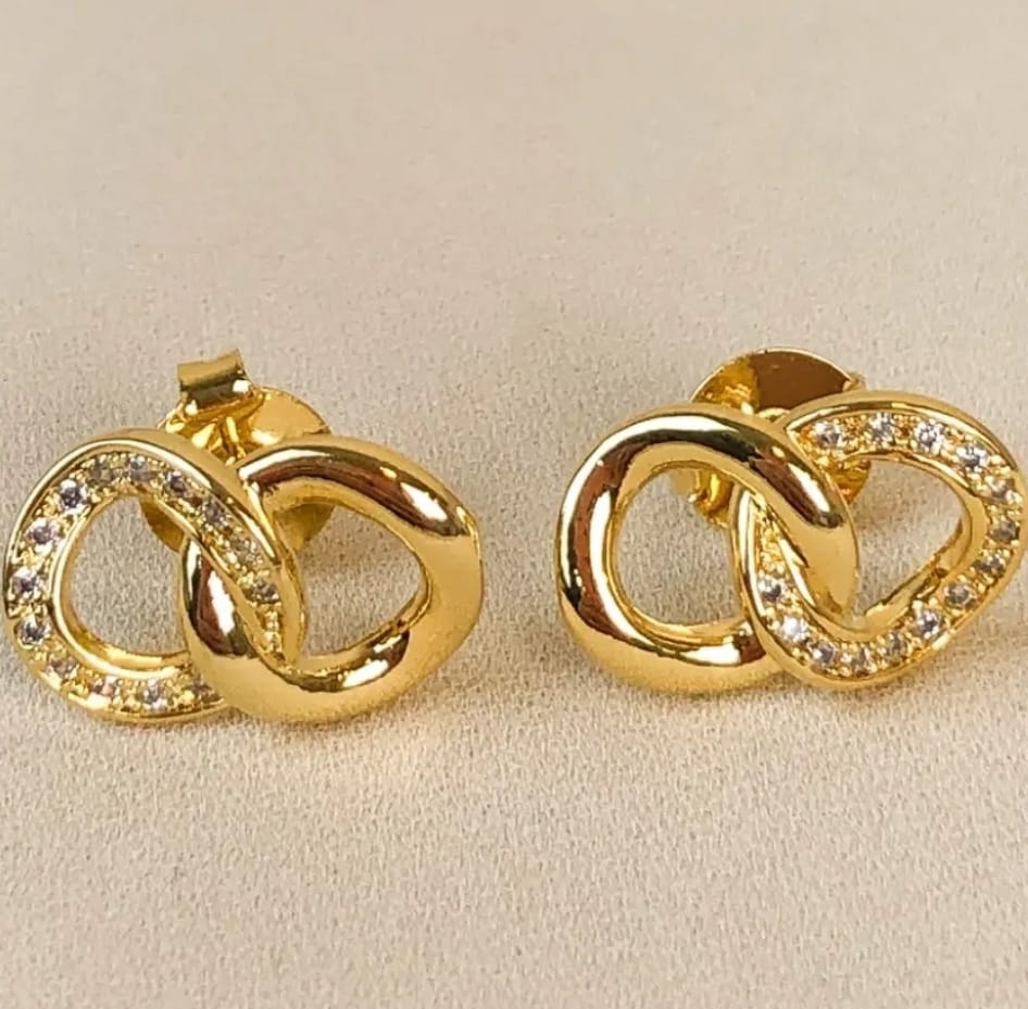 Brinco Elos Cravejado Zircônia, banhado a ouro 18k