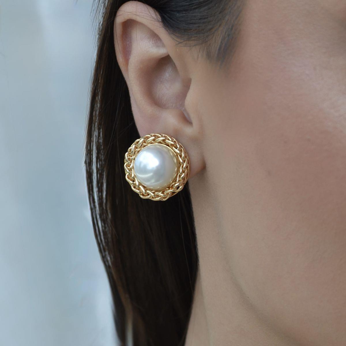 Brinco Entrelaçado Perola, banhado a ouro 18k