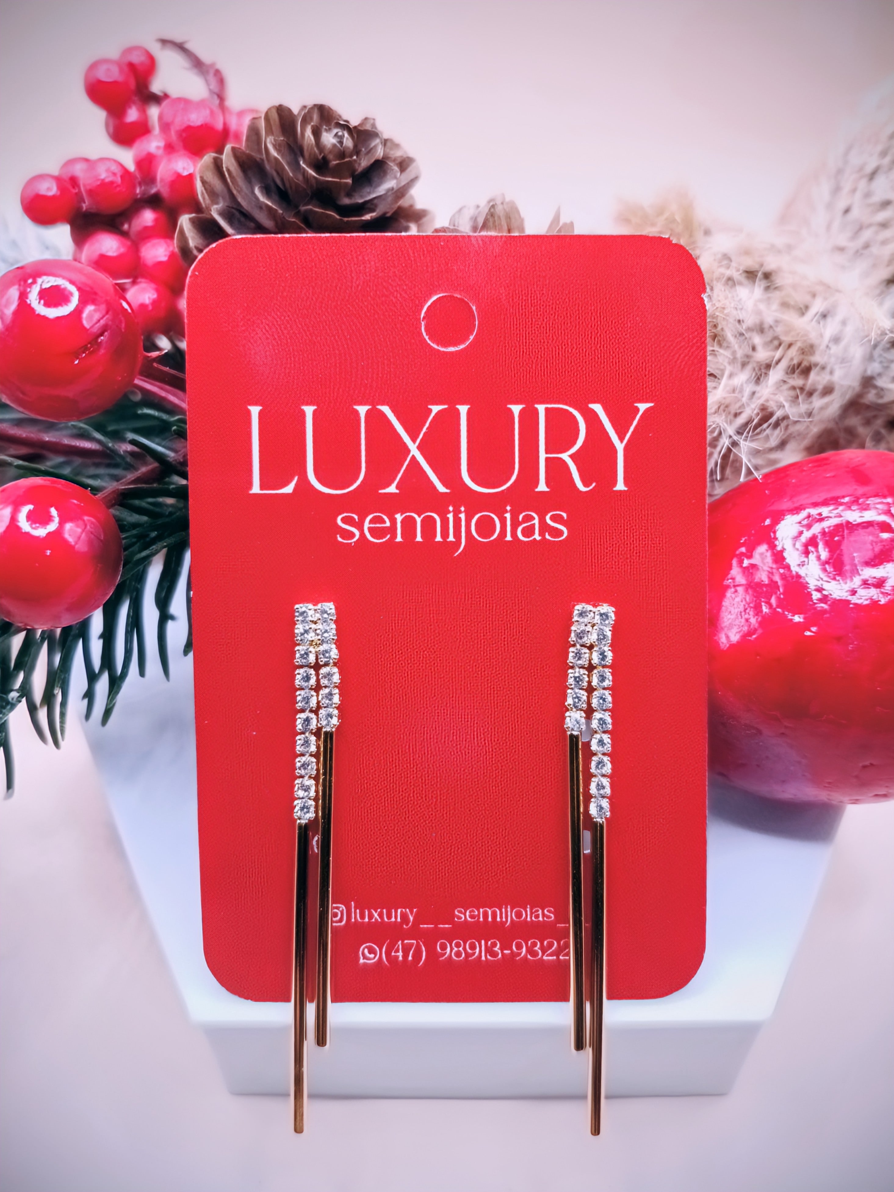 Brinco Franja com Micro Zirconias Cravejadas Folheado a Ouro 18k Código 1010