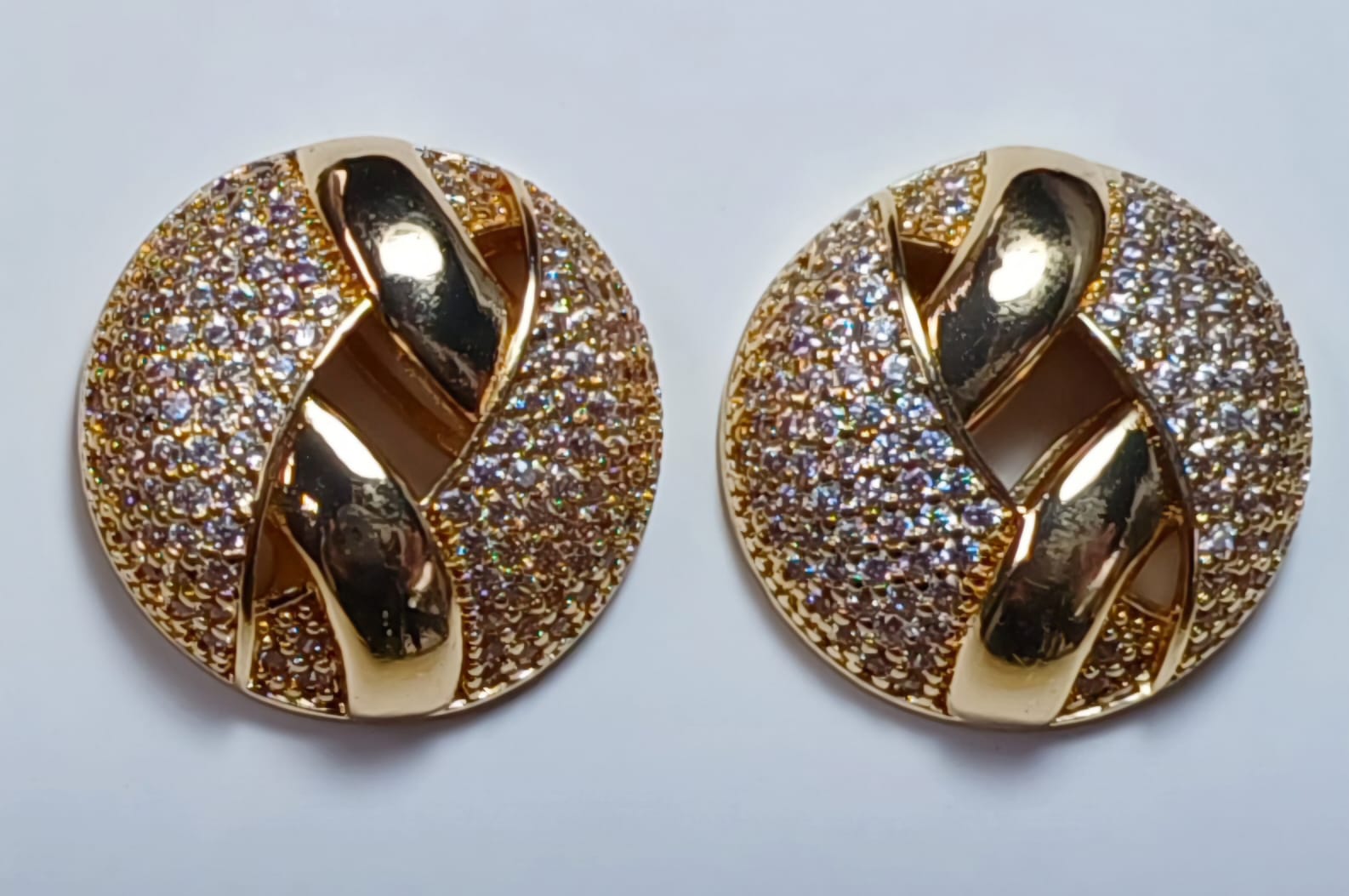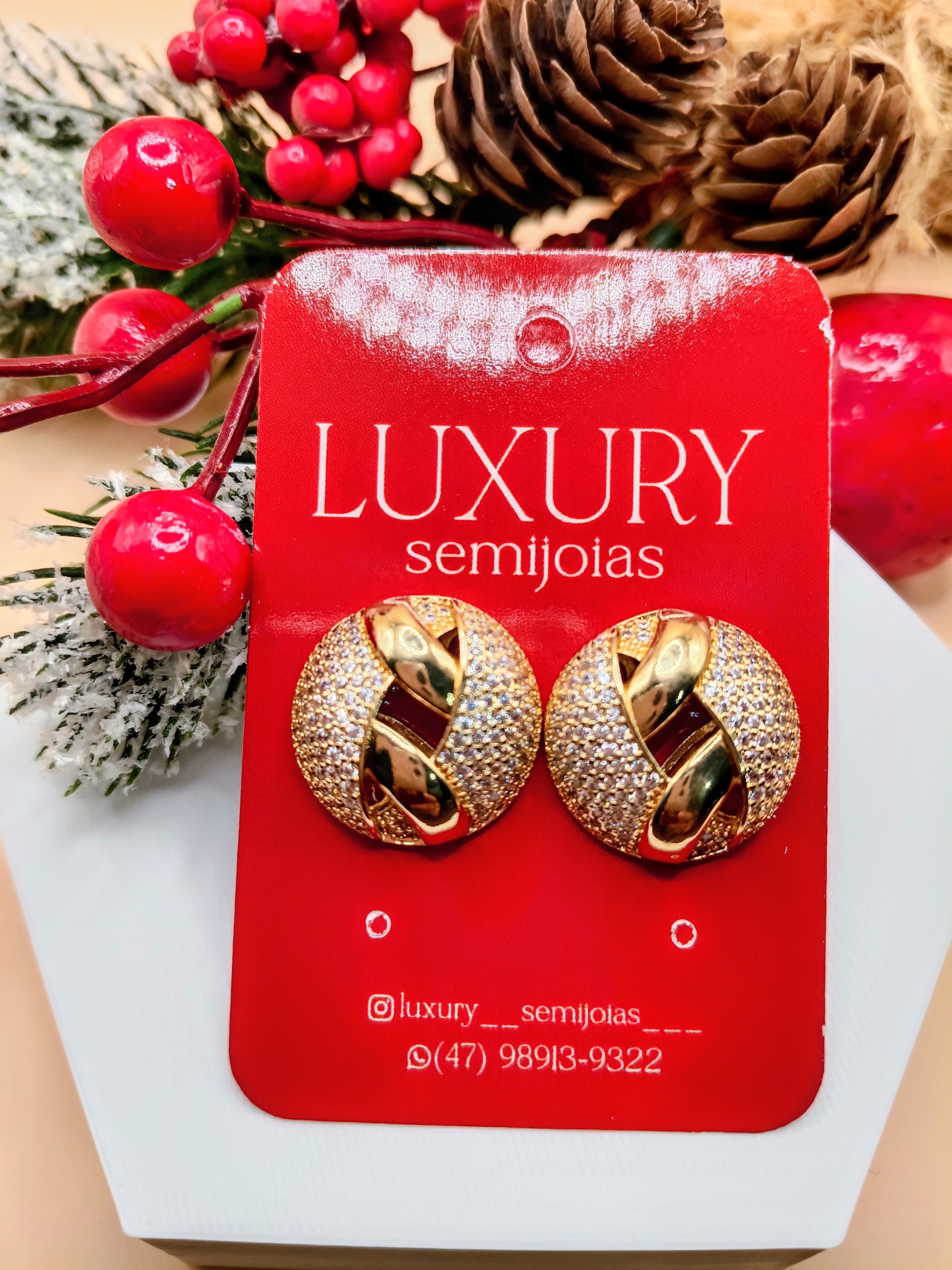 Brinco Meia Bola Cravejado Zircônia, banhado a ouro 18k