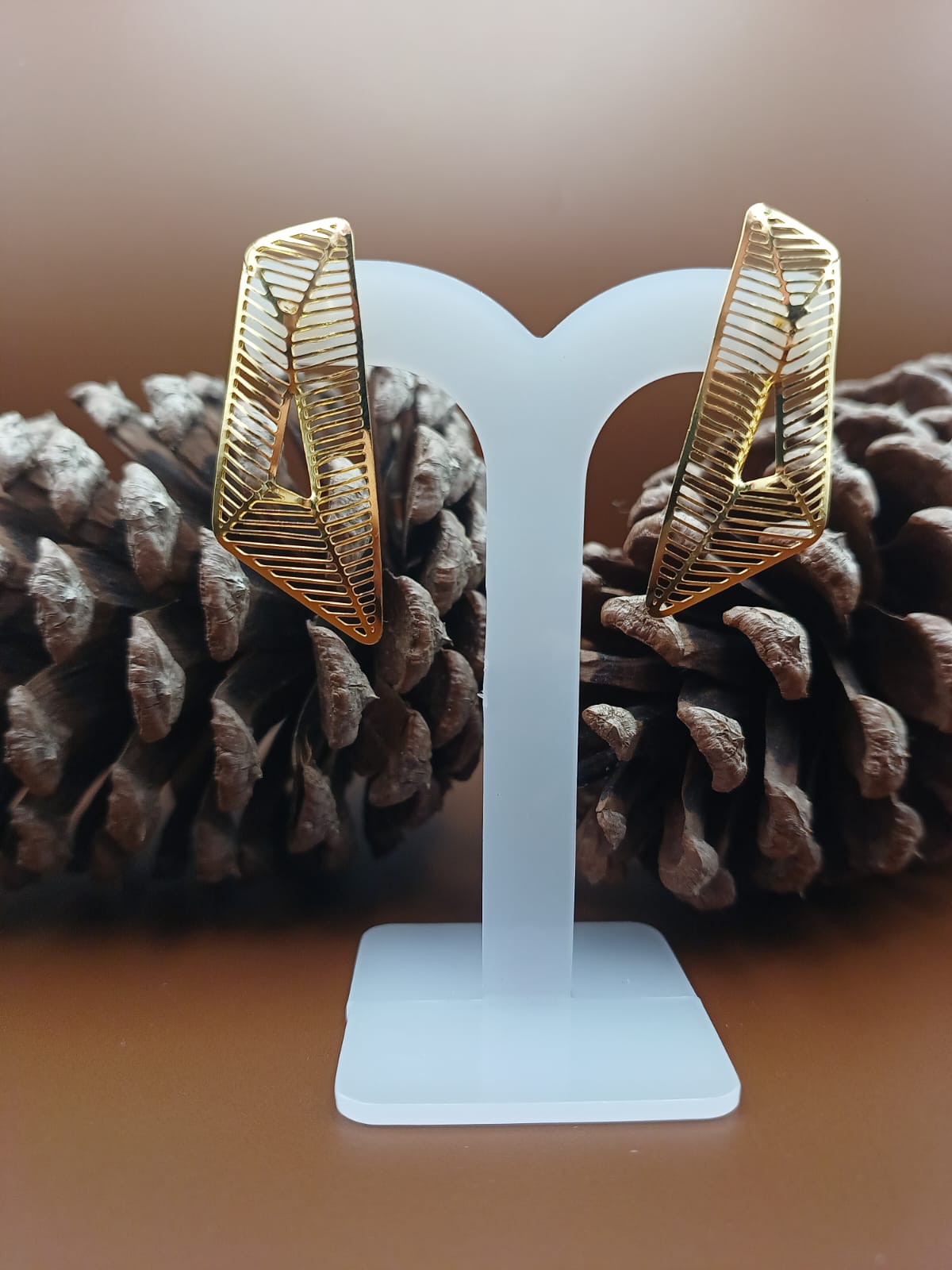 Brinco Retângulo Vazado Folheado a Ouro 18k Código 1009