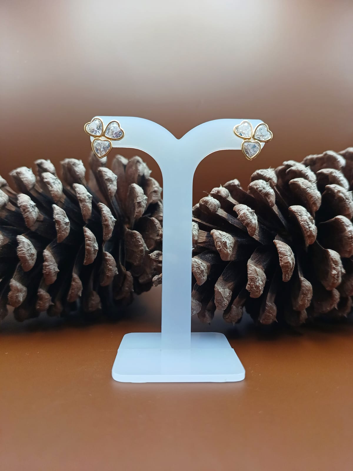 Brinco Três Corações com Zirconias Cravejadas Folheado a Ouro 18k Código 1018