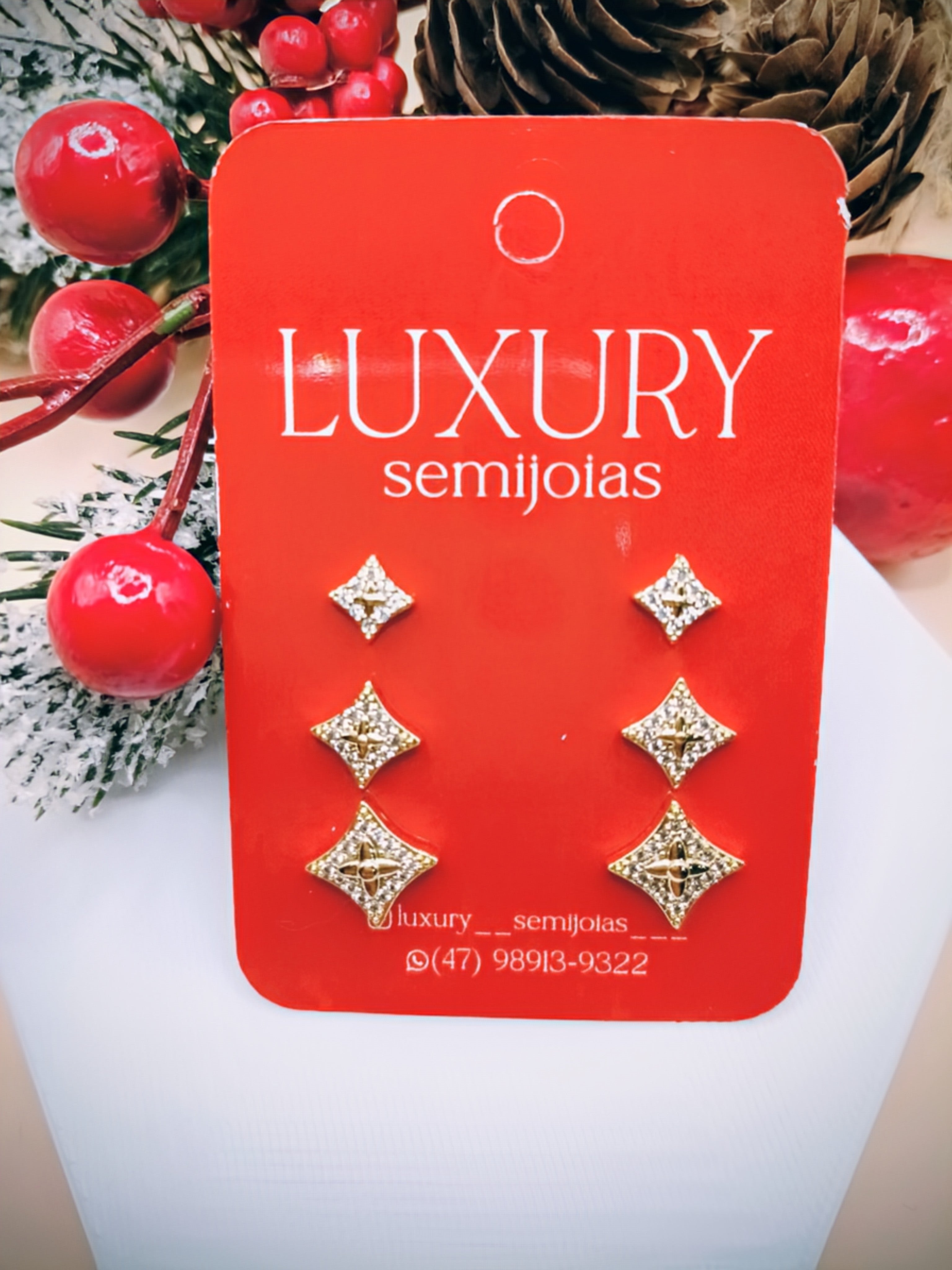 Brinco Trio de Estrelas Cravejado