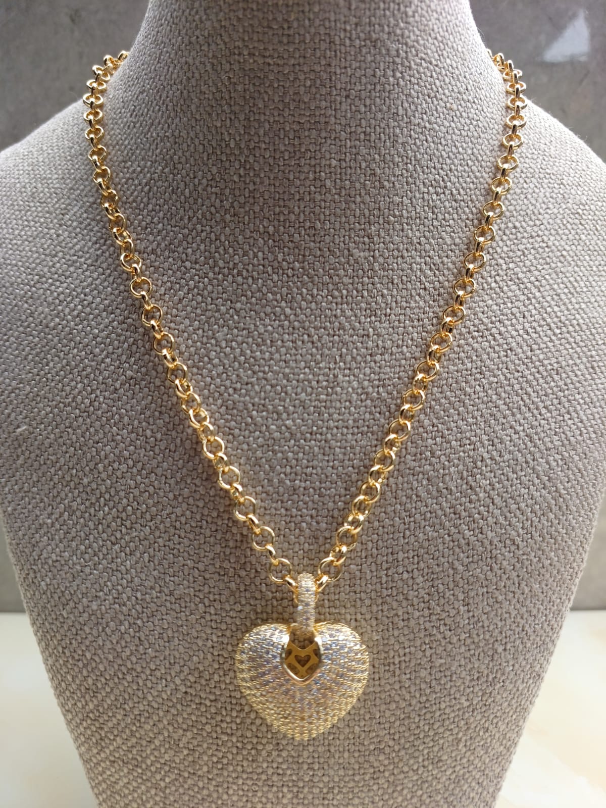 Colar Coração Cravejado Corrente Grossa, banhado a ouro 18k